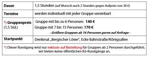 Beidem, der Shopping Mall und ihrer über 200jährigen Geschichte, wollen wir uns während des Rundgangs widmen. Dabei erfahren Sie auch etwas von der verbotenen Ballwerferin, dem Jungen ohne Lendenschurz im Neckereibrunnen, den INBUS-Schlüssel, dem nie aufgeklärten Mord eines Multimillionärs, dubiosen Postadressen und der Symbiose zwischen Stadt und Hofgarten.