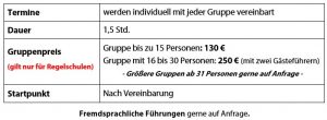 Bei den Rundgängen sind verschiedene Alternativen möglich, und zwar als lockerere, unterhaltsame und informative Rundgänge durch die
