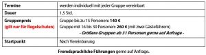 Parallelführungen mit mehreren Gruppen und fremdsprachliche Führungen sind möglich.